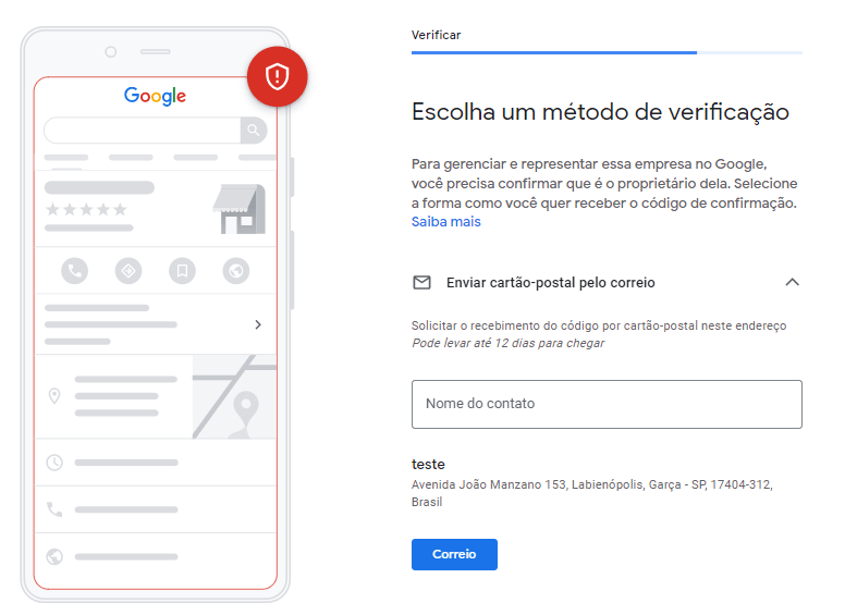 O Google exige uma verificação para que a sua ficha fique visível na Internet. Essa verificação é um código que chegará por correio no endereço da sua empresa, e que deverá ser inserido no campo de verificação no perfil da sua empresa. Esse código pode demorar até 12 dias para chegar, enquanto isso, as atualizações mais recentes não são mostradas.